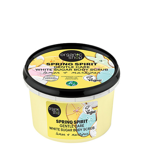 Organic Shop Spring Spirit Gyengéd ápoló testradír citrommal és marcipánnal 250 ml